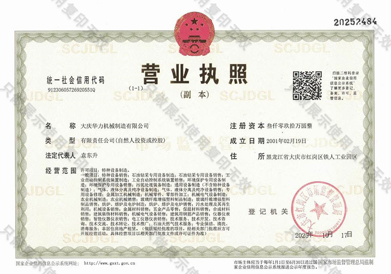 公司名稱:大慶華力機械制造有限公司