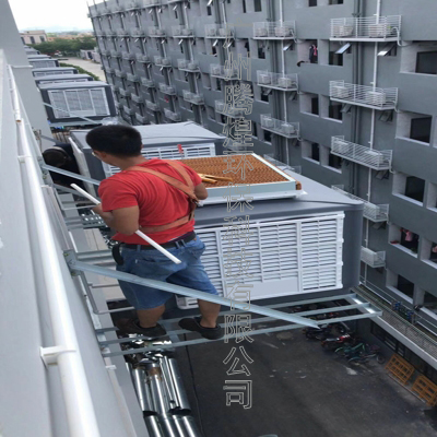 降溫神器佛山通風(fēng)降溫騰煌濕簾空調(diào),騰煌蒸發(fā)式空調(diào)機(jī)是采用水蒸發(fā)效應(yīng)原理,用物理的方法實(shí)現(xiàn)降溫,解決了普通空調(diào)“氟里昂”排放超標(biāo)的問(wèn)題。其利用濕簾作為降溫介質(zhì),水從濕簾的頂部沿濕簾的波紋表面均勻的流下,使?jié)窈煆纳系较戮鶆虻臐駶?rùn),風(fēng)機(jī)抽風(fēng)時(shí),產(chǎn)生壓力,迫使未飽和的空氣流經(jīng)多孔濕潤(rùn)濕簾表面時(shí),空氣中大量的濕熱轉(zhuǎn)化為潛熱,迫使進(jìn)入室內(nèi)的空氣從干球溫度降低接近濕球溫度增加了空氣的濕度,使得干燥的熱空氣變?yōu)闈崈舻臎鏊諝猓瑥亩鸬浇禍卦鰸竦淖饔谩?/span>