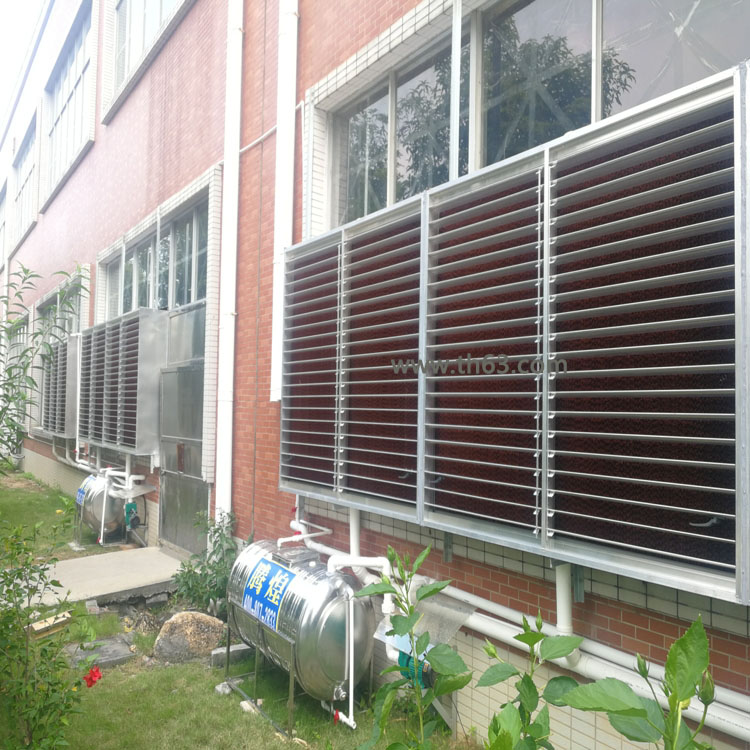 工業(yè)通風(fēng)設(shè)備工業(yè)冷風(fēng)機(jī)按照邊框材料可分為鋁合金、不銹鋼二種。比較常用的是厚度10-15cm的水簾墻,降溫效果較好,在負(fù)壓通風(fēng)降溫模式中,騰煌負(fù)壓風(fēng)機(jī)用于把室內(nèi)的污濁、熱空氣抽走,而安裝在負(fù)壓風(fēng)機(jī)對(duì)面的濕簾墻則用于進(jìn)風(fēng)。室外的新鮮熱空氣在經(jīng)過濕簾墻被淋濕的小孔時(shí),與水發(fā)生熱交換而被過濾和降溫。